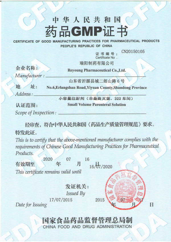 恭喜我公司合作的瑞陽(yáng)制藥有限公司榮獲GMP證書!